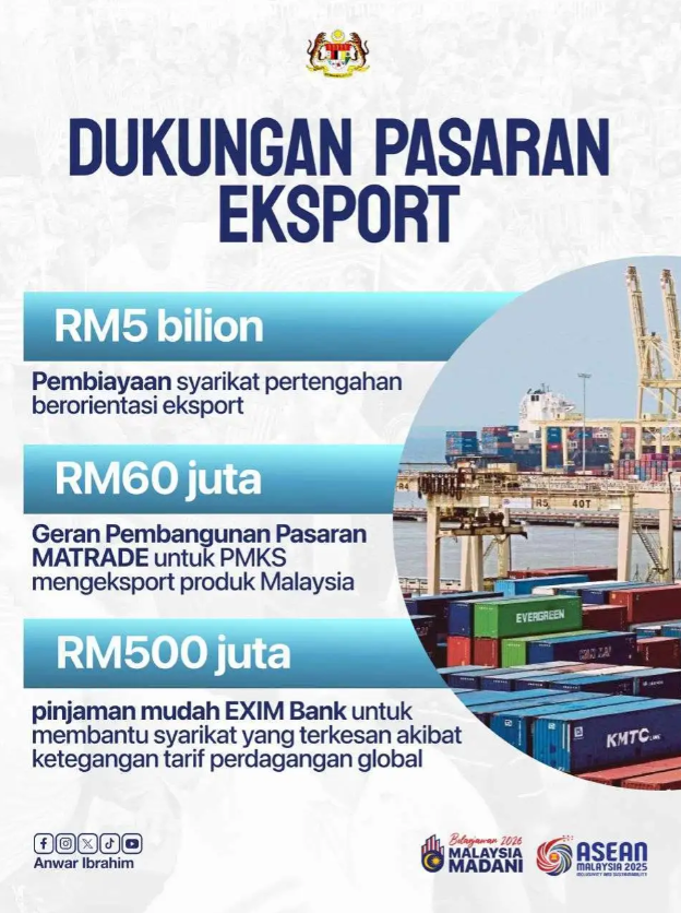 • EXIM Bank menawarkan pinjaman mudah RM500 juta bagi syarikat yang terkesan oleh ketegangan tarif perdagangan global